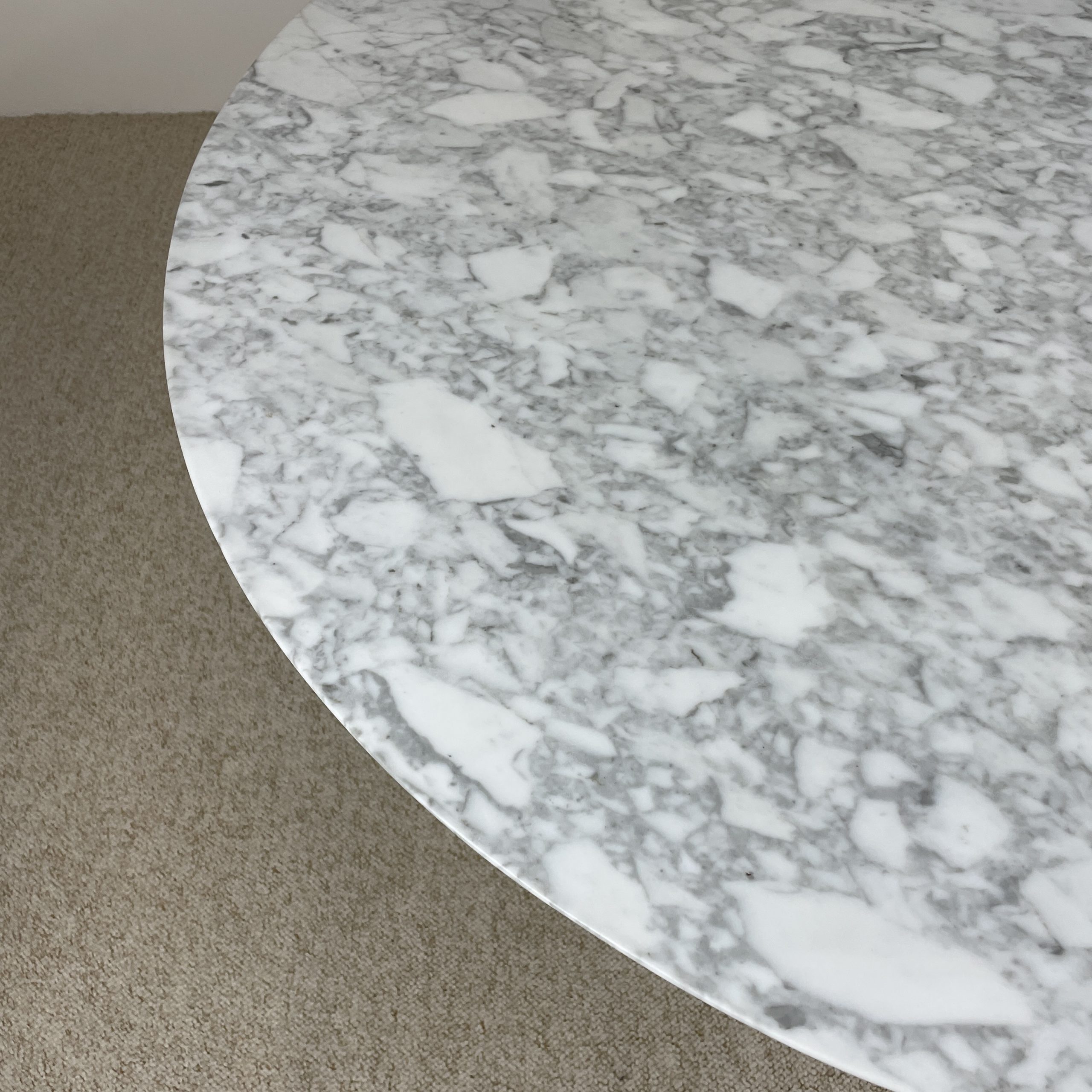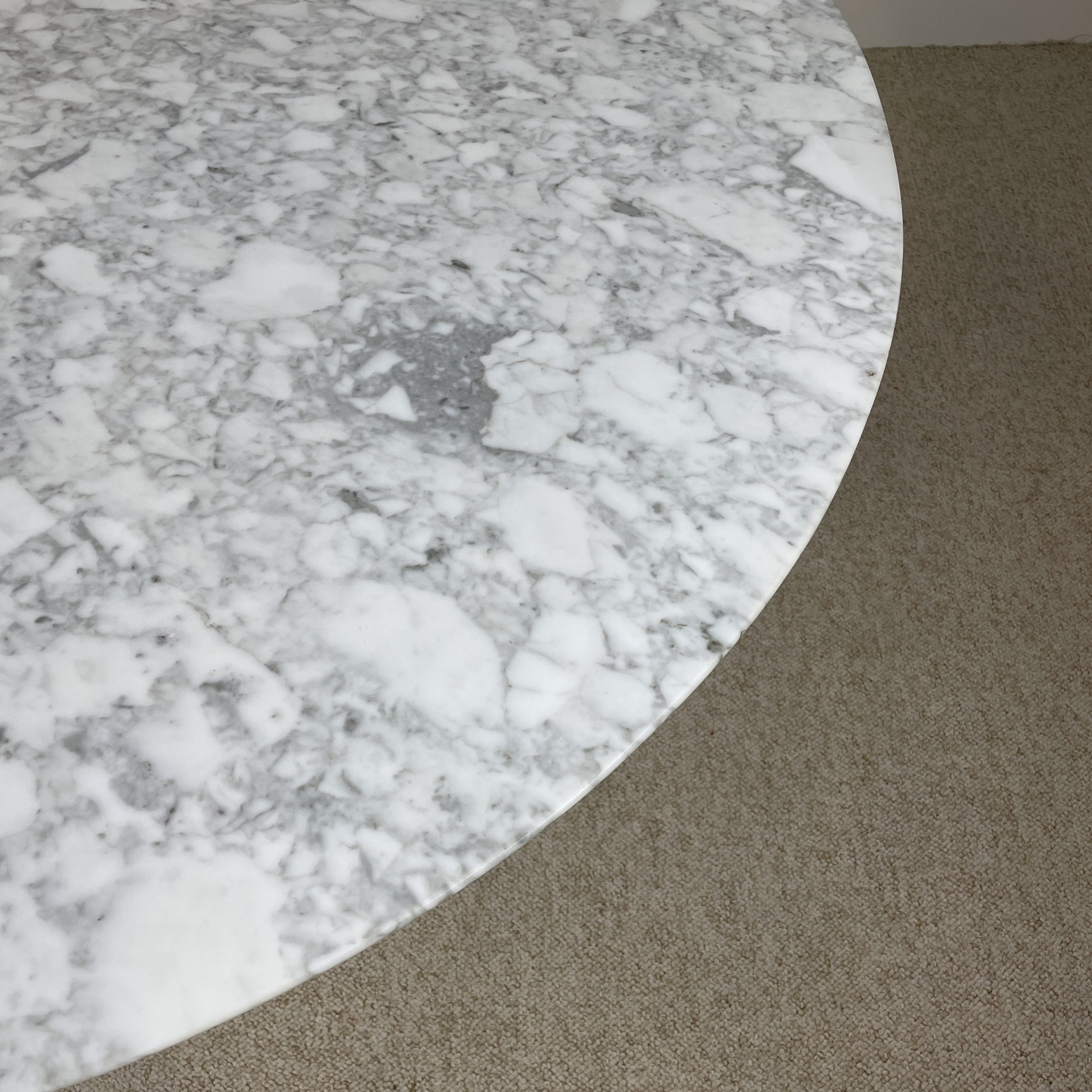 Plateau de table en marbre Calacatta 120cm. Il présente quelques marques d’usages mais aucune fissure ni casse.